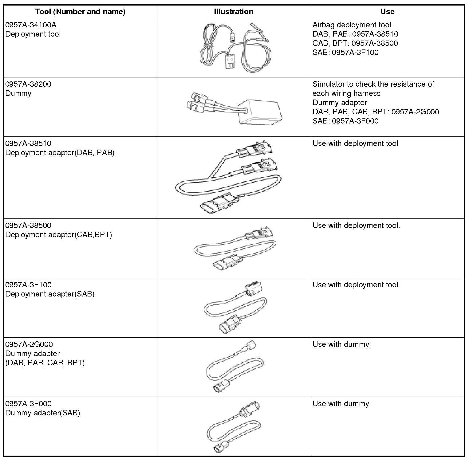 Special Service Tools* DAB : Driver Airbag