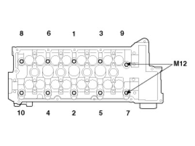 (2) Using 8mm and 10mm hexagon wrench, install and tighten the 10 cylinder head bolts and plate washers, in several passes, in the sequence shown.