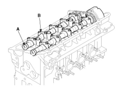 Camshaft Bearing CapInstall the camshafts(A) and bearing caps(B)