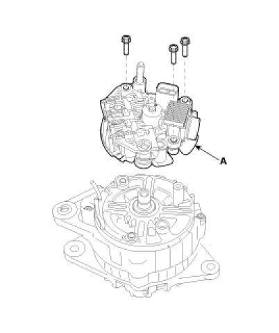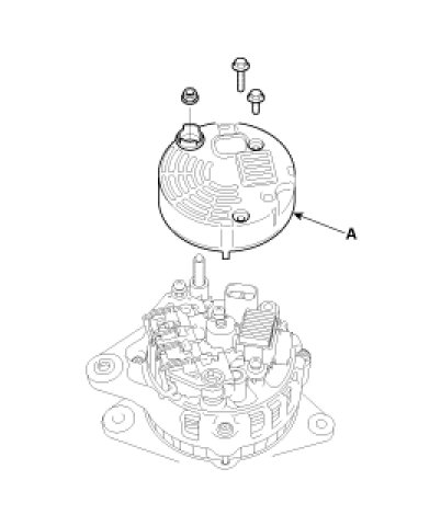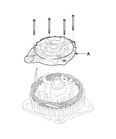 Before the rotor is attached to the rear bracket, insert a wire through the small hole in the rear bracket to lock the brush. After the rotor has been installed, the wire can be removed.