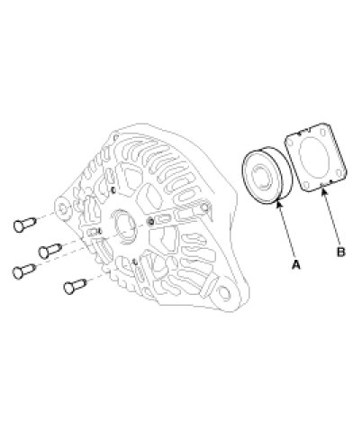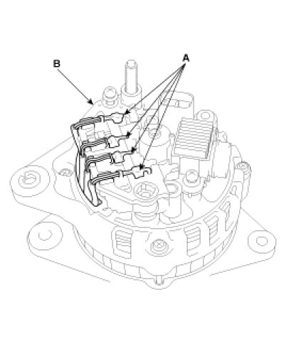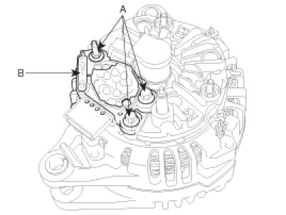 2. Unsolder the 4 stator leads(A) to the main diodes on the rectifier(B).