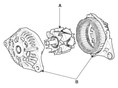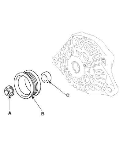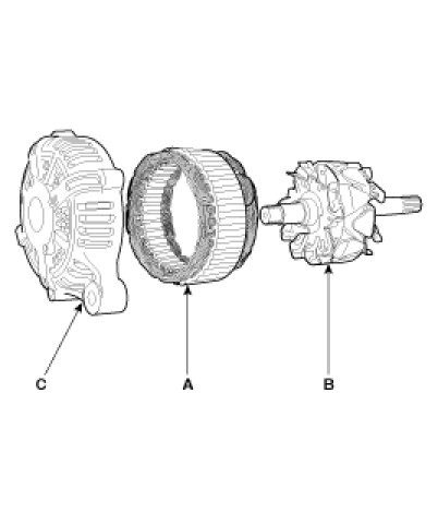 7. Disconnect the stator(A), rotor(B) and front bracket(C).