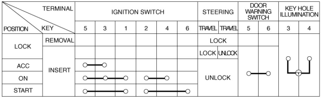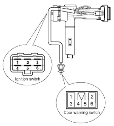 1. Disconnect the ignition switch connector(6P) and the door warning switch connector(6P) under the steering column.