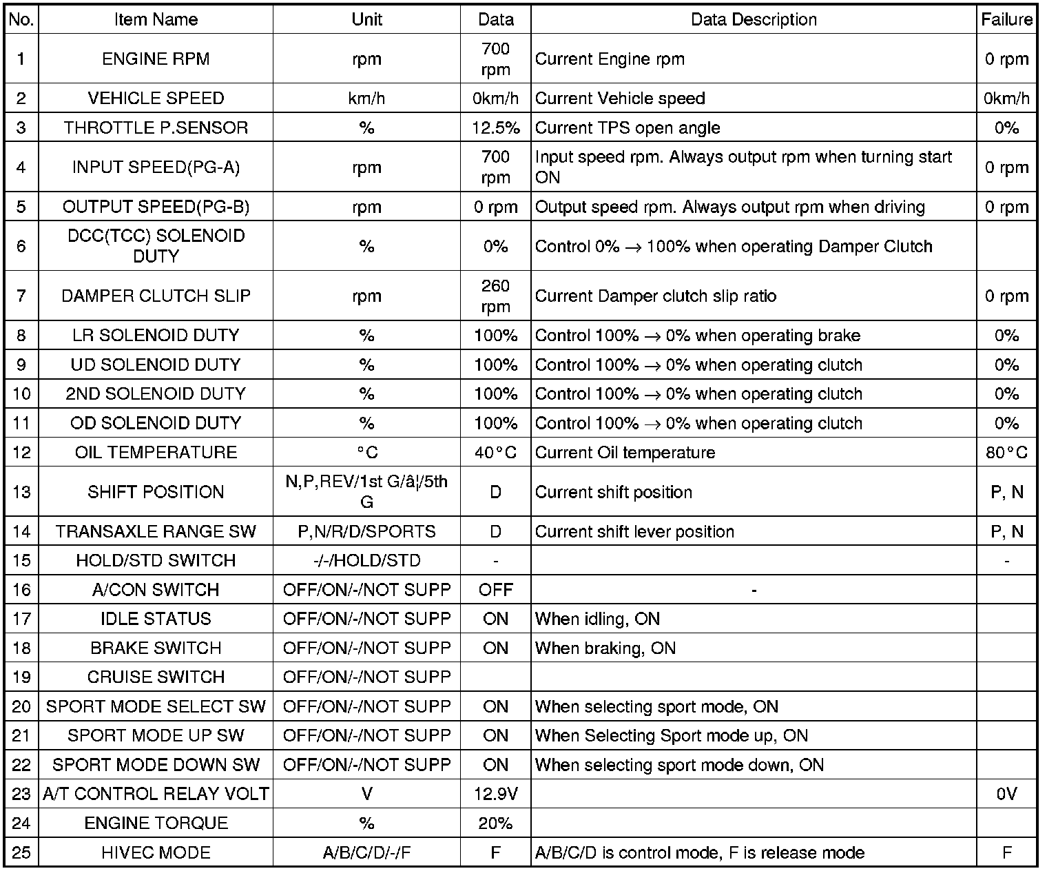 Service Data List(With Scan Tool)
