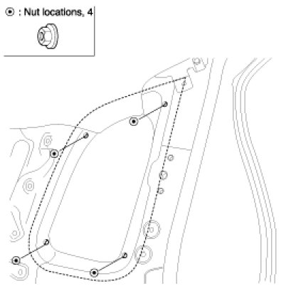 2. Loosen the quarter fixed glass (A) mounting nut.