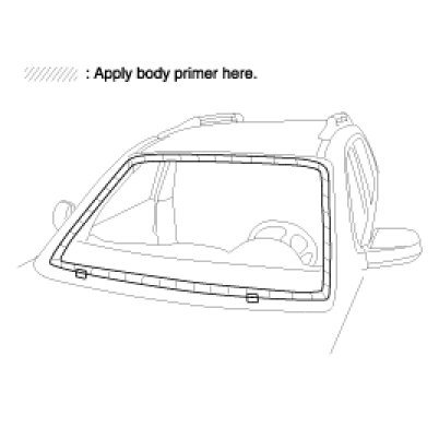 - Never touch the primed surface with your hand. If you do, the adhesive may not bond to the glass properly, causing a leak after the windshield glass is installed.