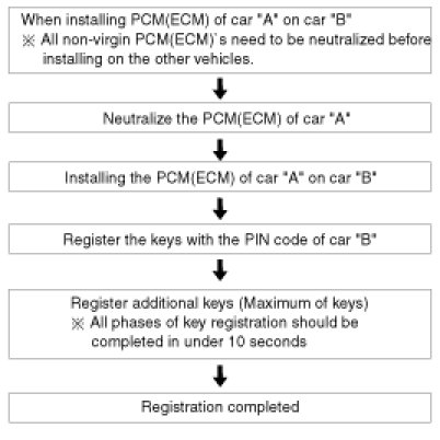 2. When the key #1 is registered and master key #2 is not registered, Put the key #1 in the IG/ON or the start position and remove it. The engine can be started with the unregistered key #2.