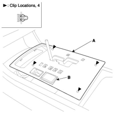 5. After loosening the console mounting screw, then remove the floor console assembly (A).