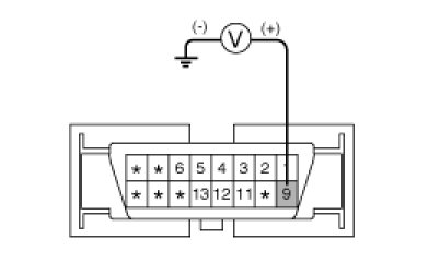 1. Measure the voltage between terminal 9 of the data link connector and body ground.