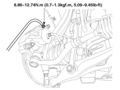3. Loosen the right-rear brake bleed screw to allow air to escape from the system. Then tighten the bleed screw securely.