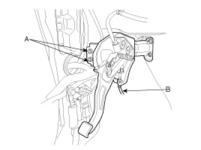 2. Remove the parking brake mounting bolt(A) and the wire(B).