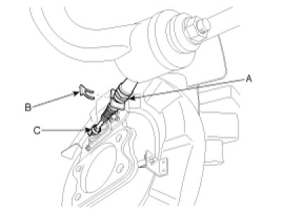 3. After installing the strut assembly(A), install the adjuster assembly(B) and the lower return spring(C).