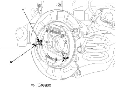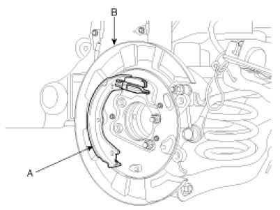 1. Install the brake shoe(A) to the backing plate(B).