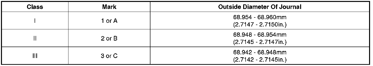 If the proper clearance cannot be obtained by using the appropriate larger or smaller bearings, replace the crankshaft and start over.