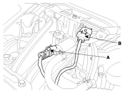 5. Disconnect PCSV connector(A), MAP sensor connector(B) and PCSV hose.