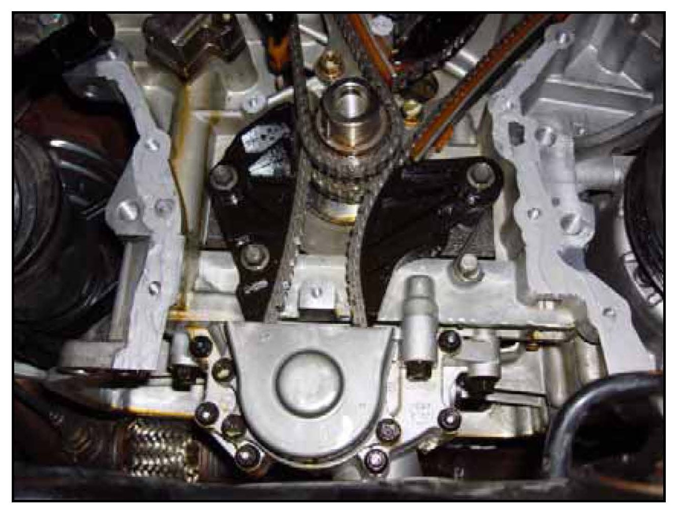 For the applicable vehicles equipped with 3.3L and 3.8L V6 engines listed below, this bulletin outlines the revised service procedure to improve serviceability for the removal and replacement of both LH/RH timing chain tensioners. The new procedure does not require that the engine be removed from the vehicle. Accordingly, the updated warranty information has been included.