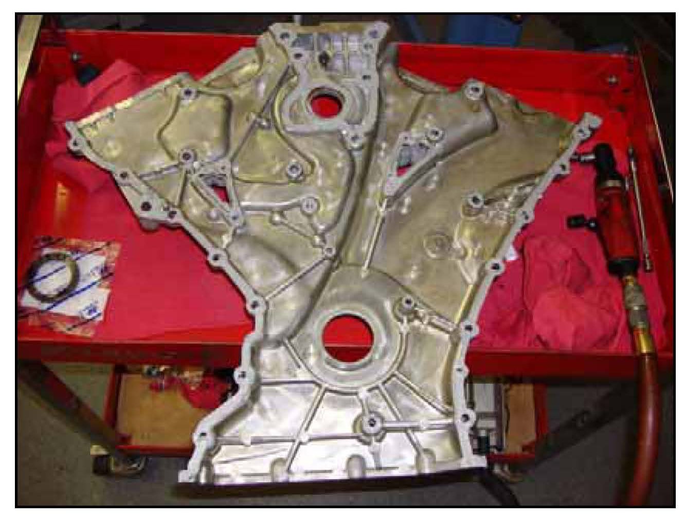 30. Carefully, remove the timing chain cover.