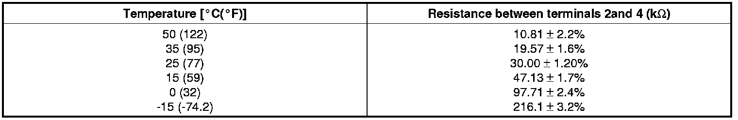 3. Blow air with changing temperature to the in car sensor air inlet. Measure sensor resistance between 2 and 4 terminals.