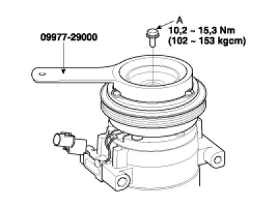 1. Remove the center bolt (A) while holding the disc & hub assembly with a commercially available disc & hub assembly bolt remover; Special tool number 09977-29000.