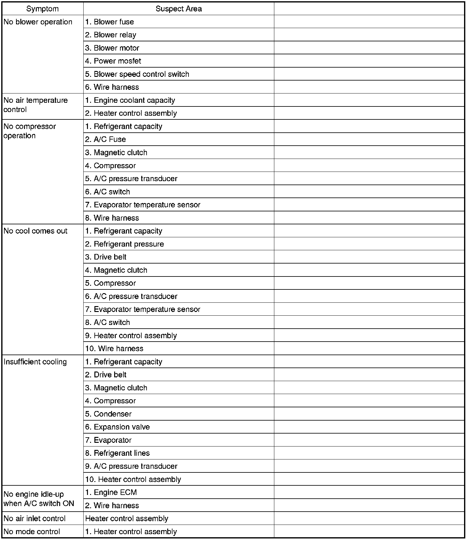 Use the table below to help you find the cause of the problem. The numbers indicate the priority of the likely cause of the problem. Check each part in order. If necessary, replace these parts.
