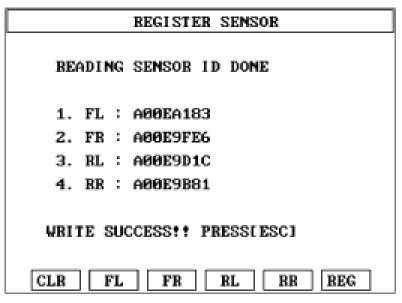 1. Read the four sensor's ids starting with sensor 1 (1 normally front left, 2 front right, 3 rear left, 4 rear right).