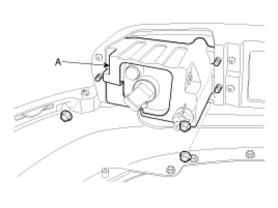 Remove the front fog lamp assembly (A) after loosening nuts and disconnecting the fog lamp connector.