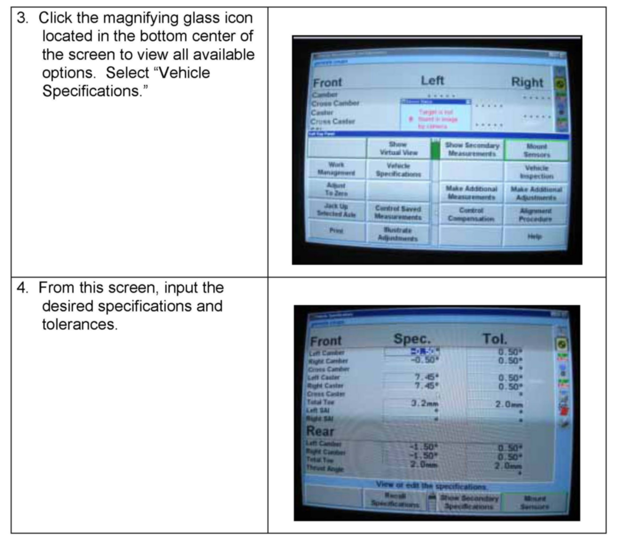 HOW TO INPUT ALIGNMENT SPECIFICATIONS