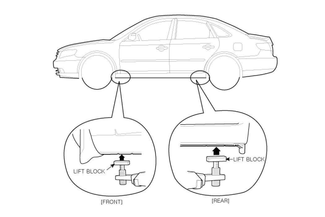 1. Place the lift blocks under the support points as shown in the illustration.