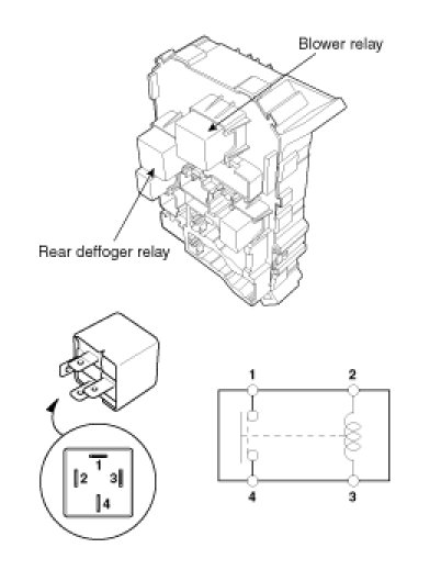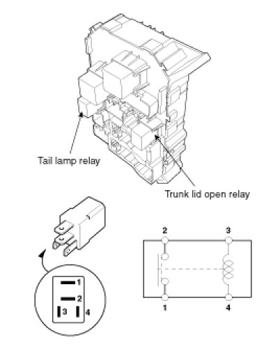 1. There should be continuity between the No.1 and No.4 terminals when power and ground are connected to the No.2 and No.3 terminals.