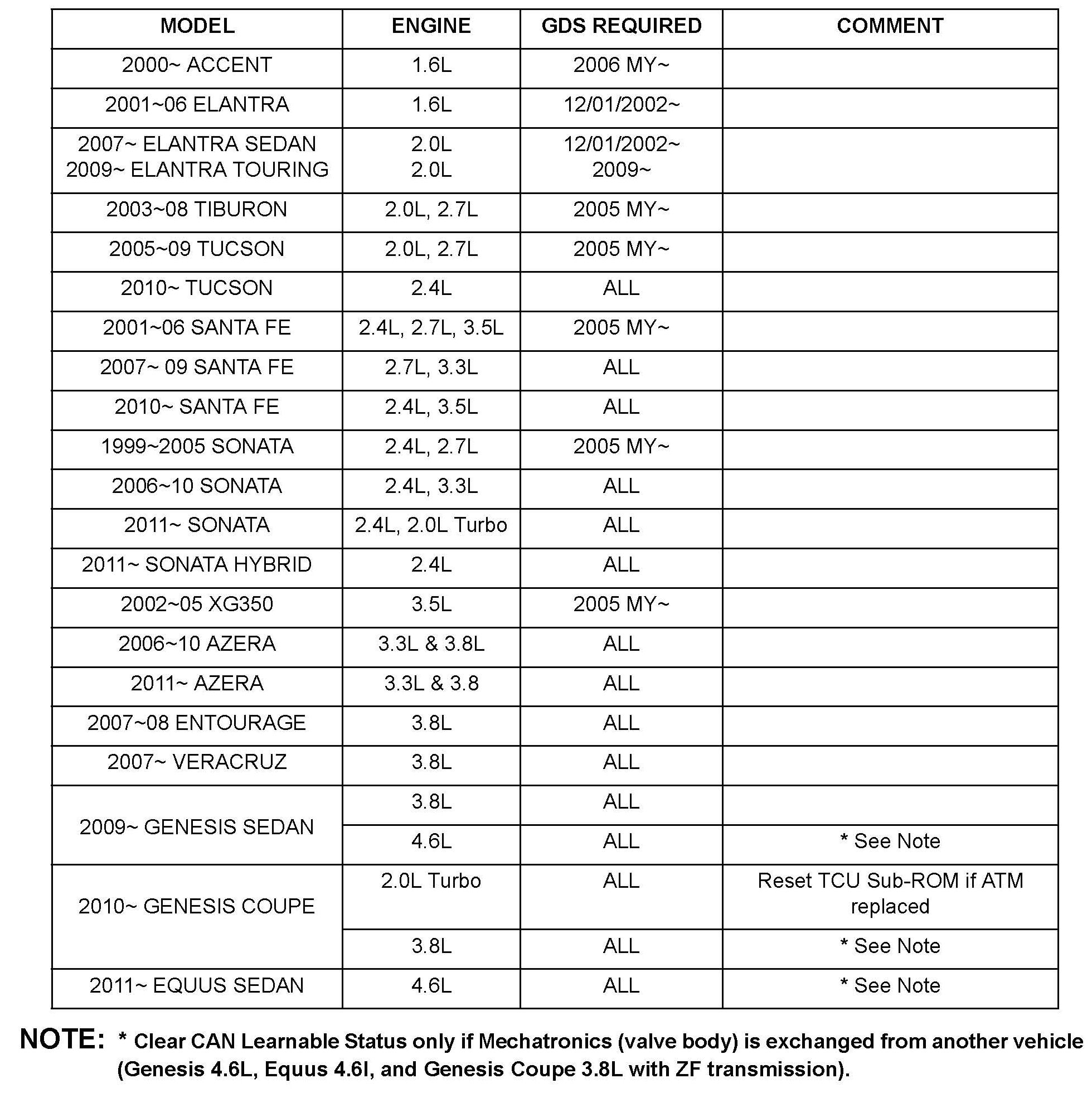 This bulletin supersedes TSB 09-AT-002-1 to include Equus and Sonata HEV