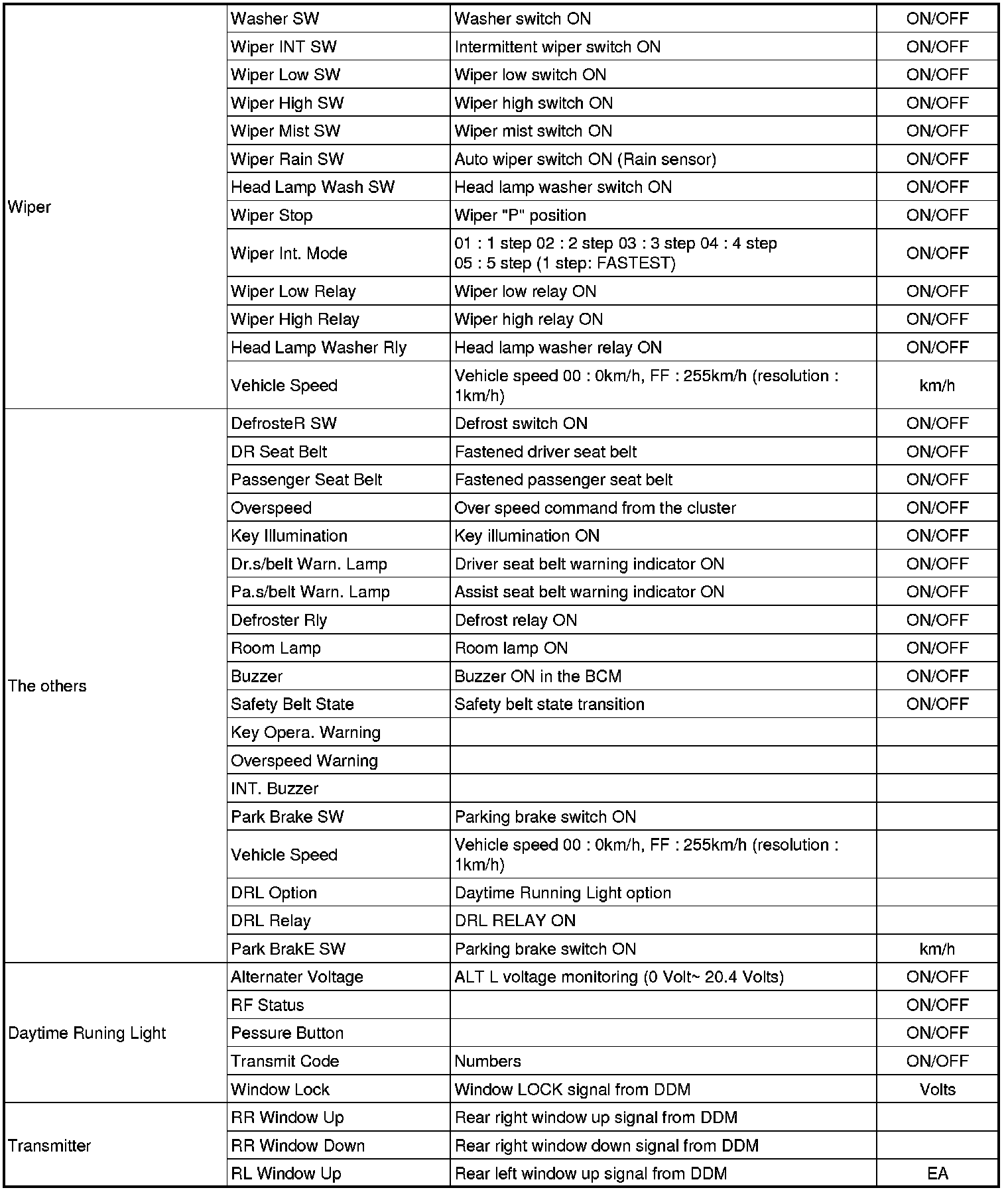 2. Only BCM communicates directly with scan tool, and the other units perform self-diagnostic function by BCM through the mediator of CAN or LIN.