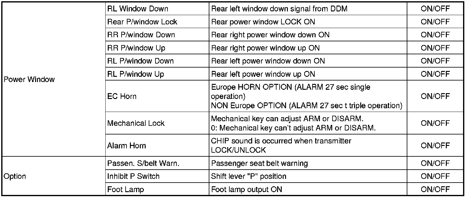 The BCM offers 4 items user option mode for a user convenience (LOCK/UNLOCK ALARM, AUTO DOOR LOCK, GET IN & GET DOWN LINKAGE, ARM/DISARM BY KEY)