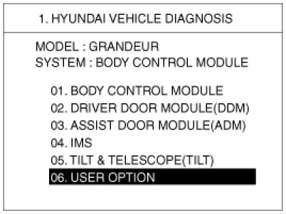 1. Select option "GRANDEUR(TG)" and press ENTER.