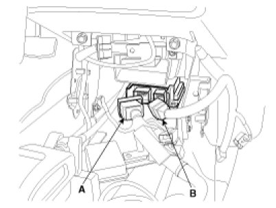 5. Disconnect the SRSCM harness connector(A) and (B) from the SRSCM.