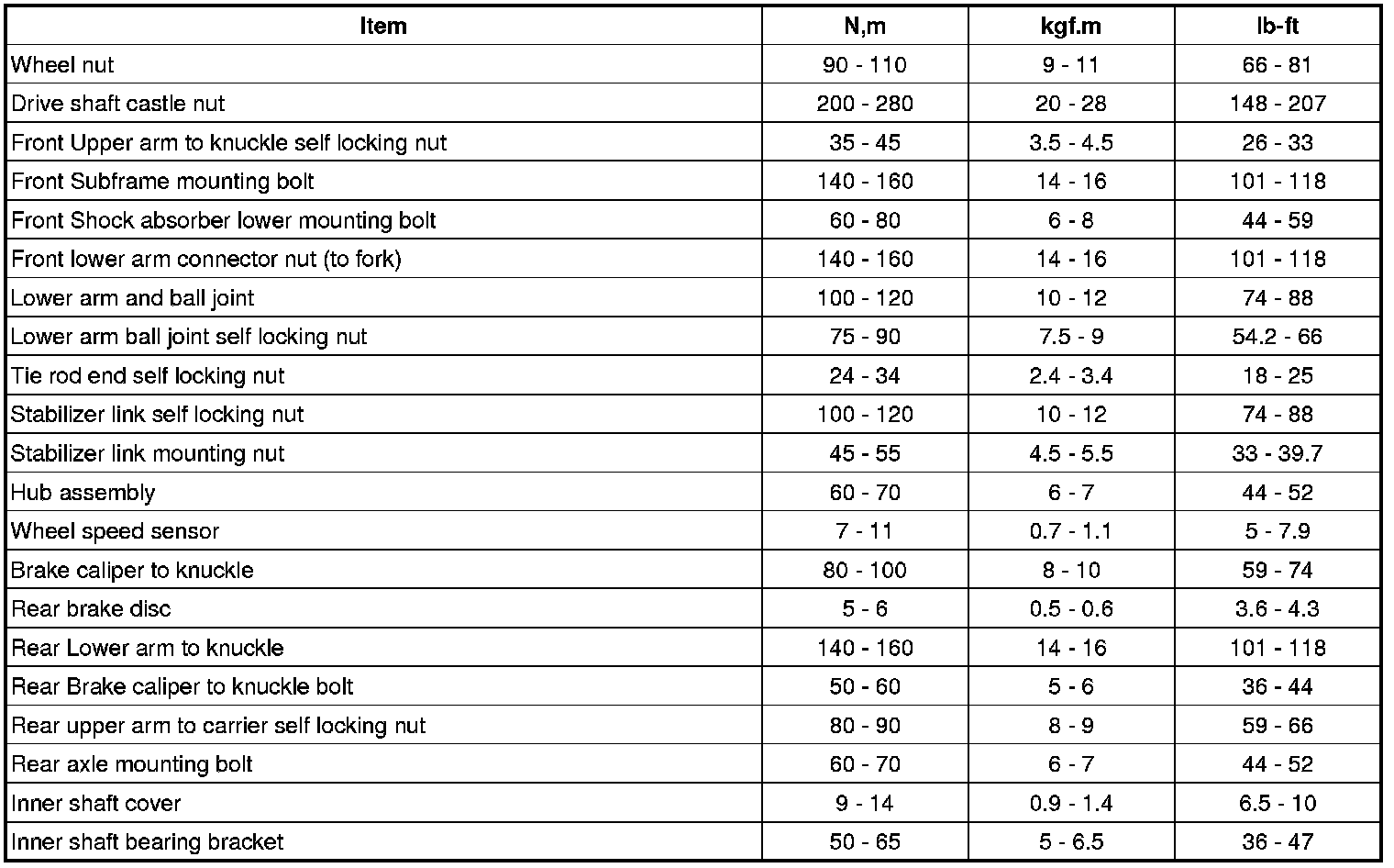 SpecificationsTightening TorquesCAUTION:Replace self-locking nuts with new ones after removal.