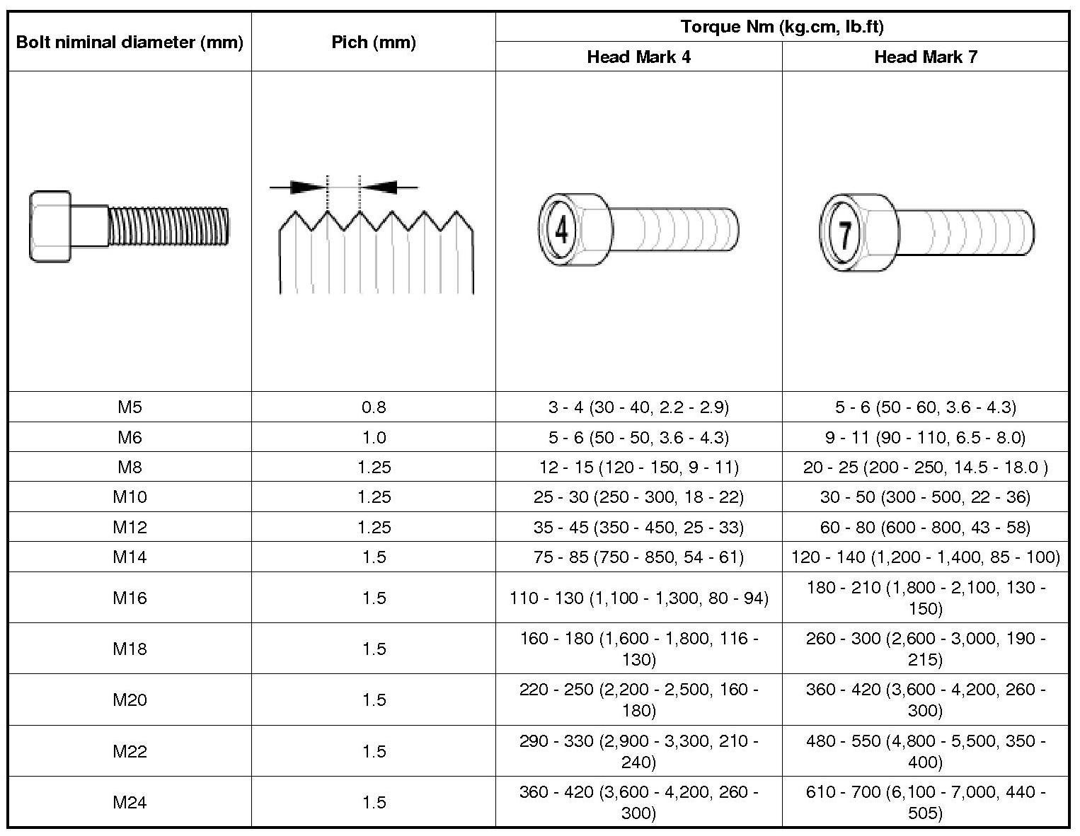 Tightening Torque Table Of Standard Parts