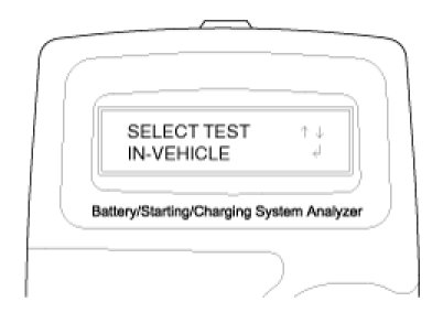 2. The tester will ask if the battery is connected "IN-VEHICLE" or "OUT-OF-VEHICLE". Make your selection by pressing the arrow buttons; then press ENTER.
