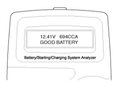 6. The tester displays battery test results including voltage and battery ratings.