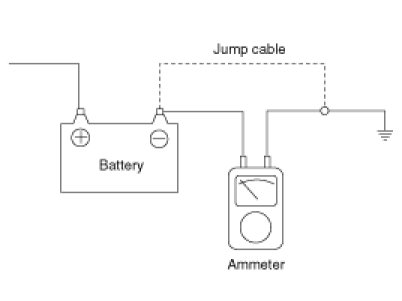 3) Connect an ammeter between the battery (-) terminal and the ground cable.