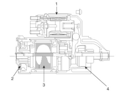 The contacts close and the starter motor cranks. In order to prevent damage caused by excessive rotation of the starter armature when the engine starts, the clutch pinion gear overruns.