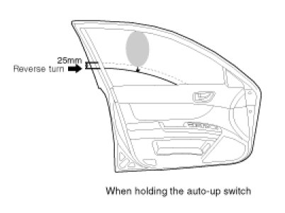 2. Length of window reversing (except holding the auto-up switch)