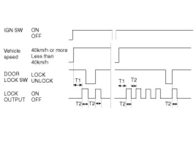 (3) Lock signal is output 3 times as Max ((2) is ignored) if either one door is unlocked after lock signal output in (2).(1s cycle) But, door, which is locked from unlock state during 3-time output, is ignored.