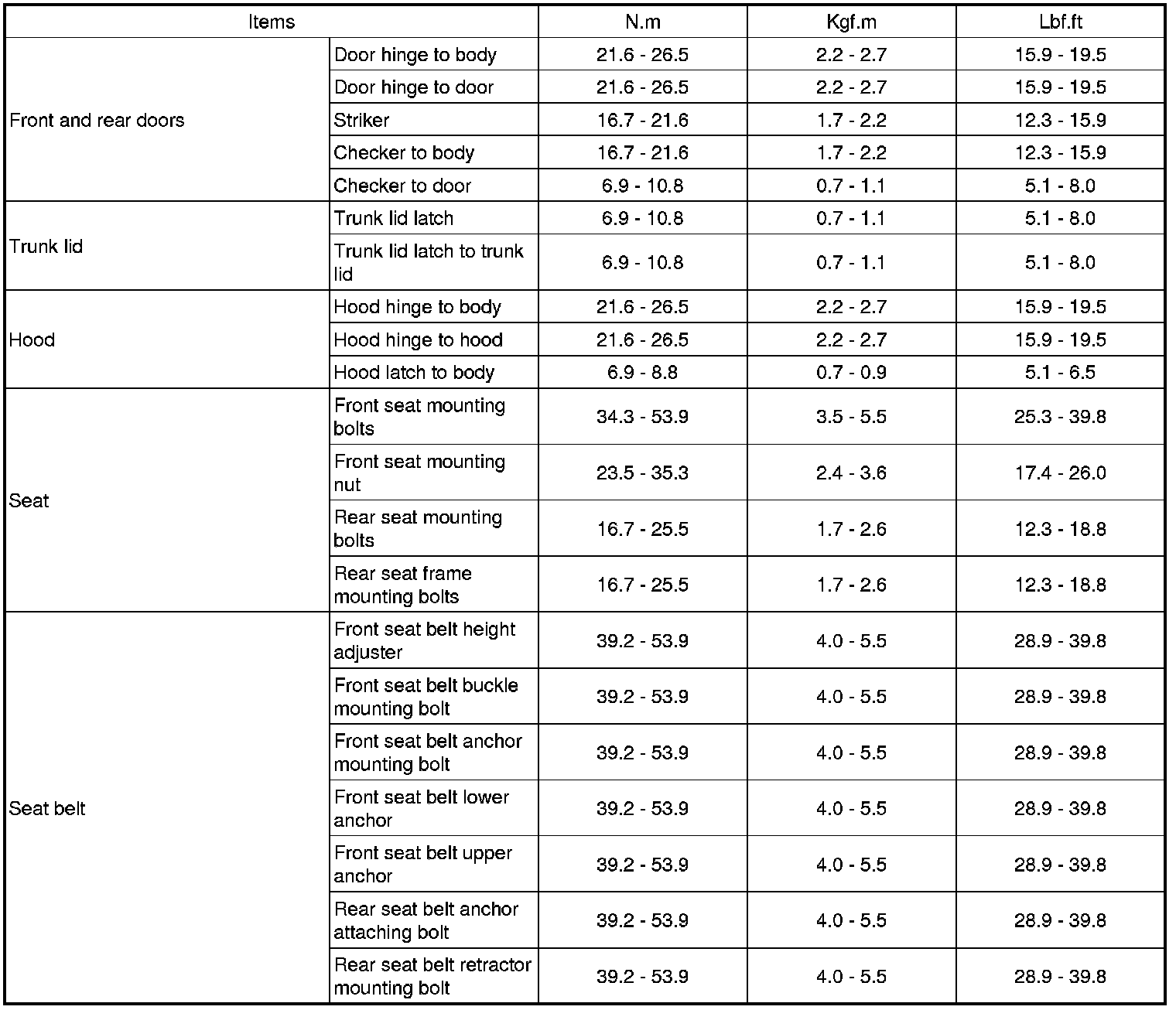 Tightening Torques