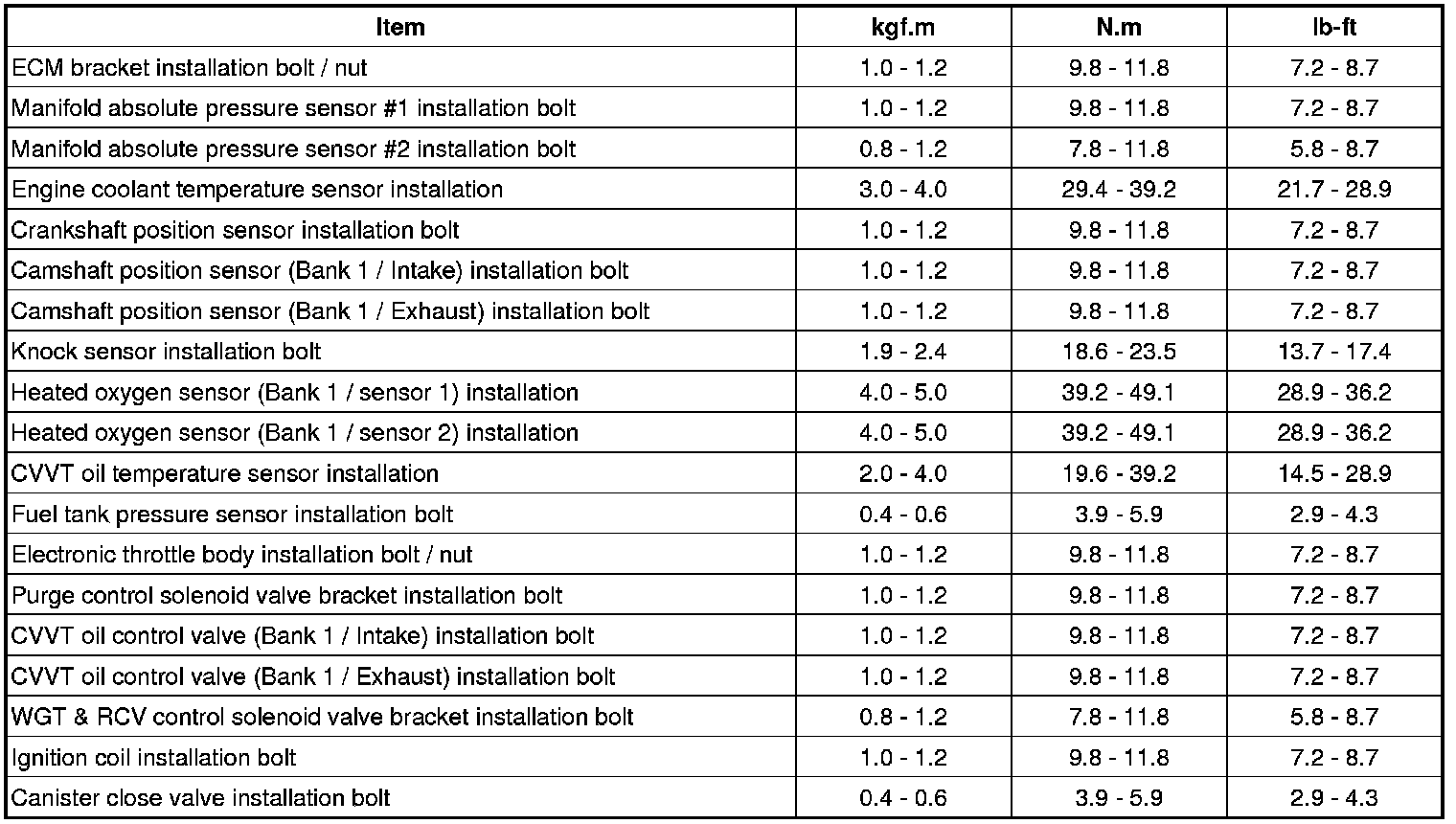 Tightening Torques