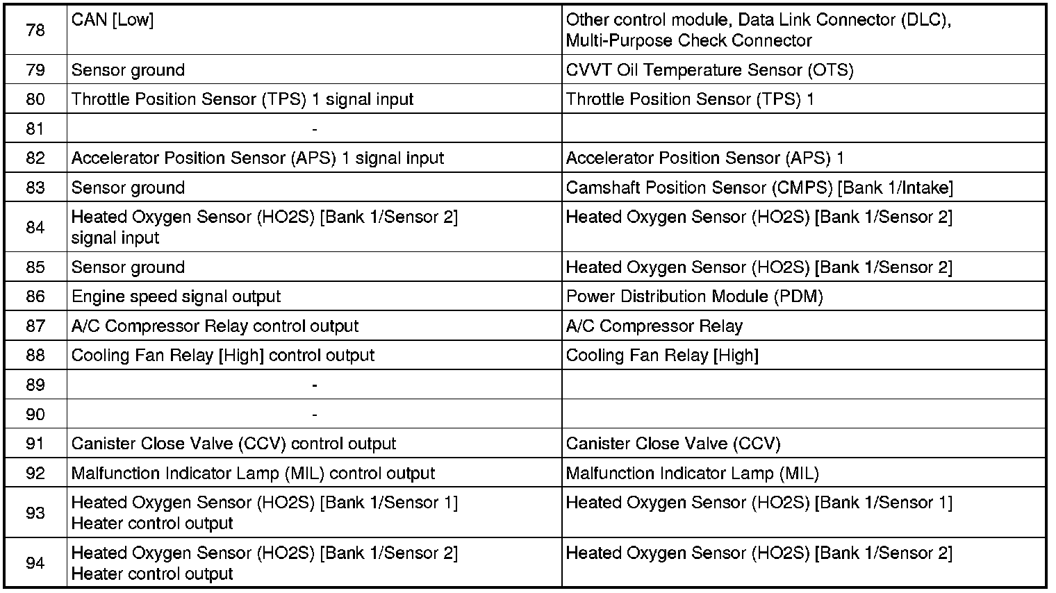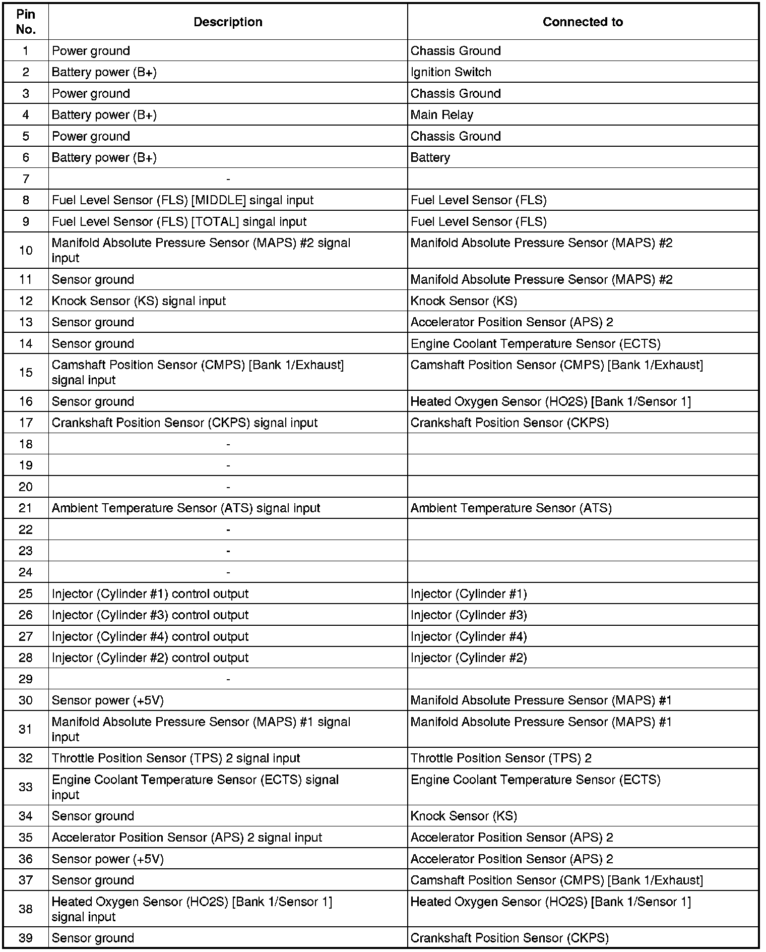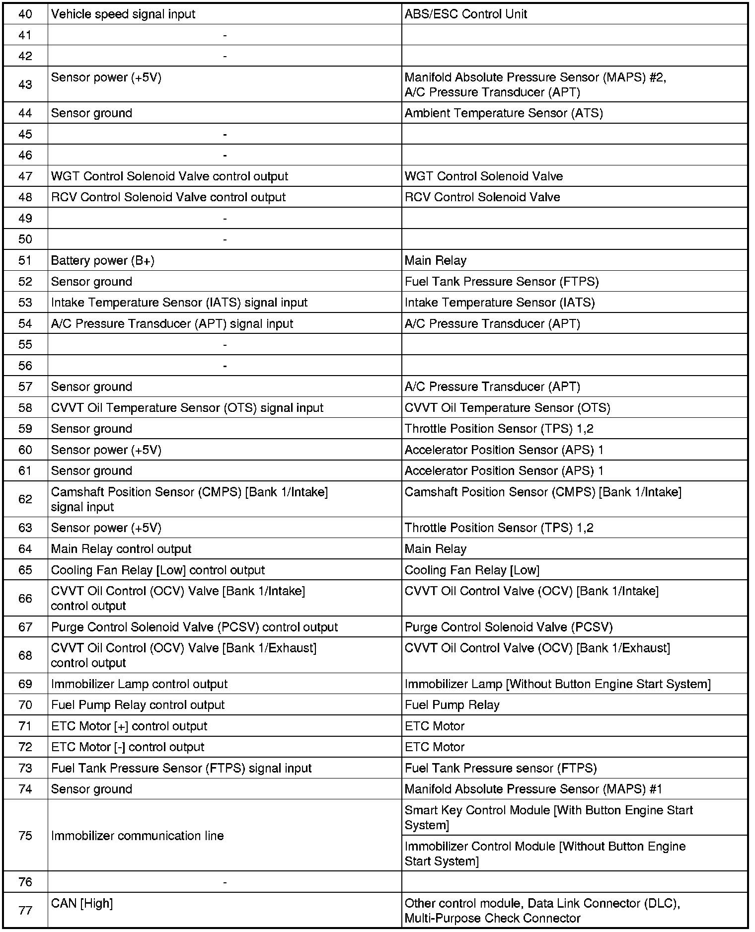 ECM Terminal And Input/Output signal