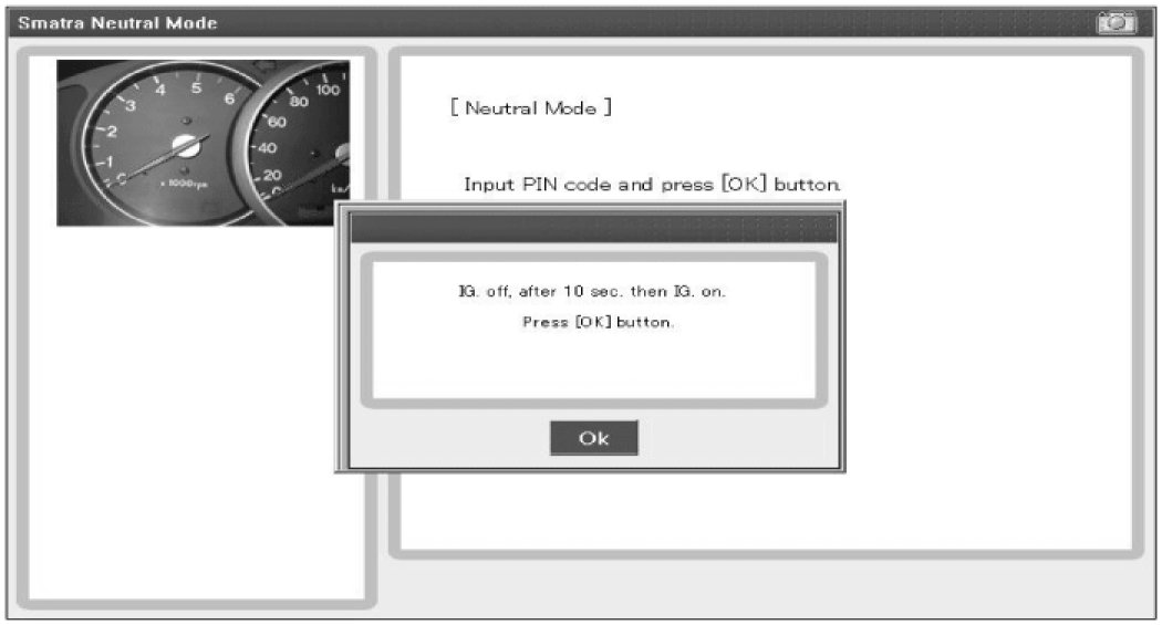Ignition key (regardless of key status) is inserted and after IGN ON. If receiving the correct vehicle password from GST, SMARTRA can be neutralized. The neutralization of SMARTRA is possible if DPN is same as the value inputted by GST.