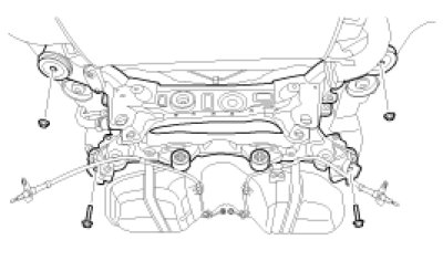 8. Loosen the bolts and nuts and then remove the sub frame.