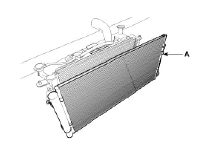 5. Remove 2 bolts, and then remove the condenser (A) by lifting it up. Be careful not to damage the radiator and condenser fins when removing the condenser.