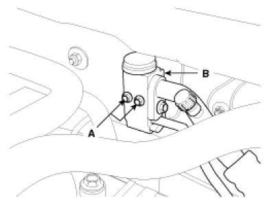 4. Remove the bolts (A) and the expansion valve (B) from the evaporator core.