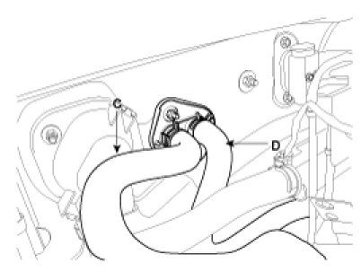 5. Disconnect the inlet (C) and outlet (D) heater hoses from the heater unit.
